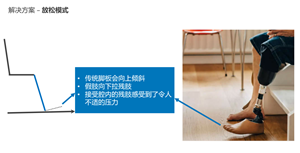 還有截肢者,在坐下和起身時,會感覺殘肢很痛,站起來時也很費力。這是由于傳統(tǒng)腳板在坐下時腳趾尖會向上傾斜,導致假肢向下拉殘肢,引起接受腔內(nèi)的殘肢不適。