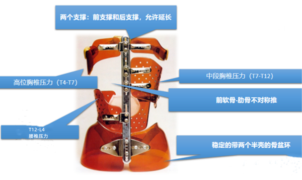 1、運用了耦合運動來實現(xiàn)三維矯正,結(jié)合幾何和機械反扭轉(zhuǎn)來矯正錐體的旋轉(zhuǎn),這種矯正機制與三點力矯正原理和抗旋轉(zhuǎn)原理不同。在胸椎中根據(jù)關(guān)節(jié)面的前方定位,在彎曲中進(jìn)行區(qū)域前方矯正,在腰椎中根據(jù)關(guān)節(jié)面的矢狀定位,在移位中進(jìn)行區(qū)域前方矯正。