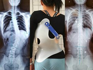 在青少年快速發(fā)育期內(nèi),身體長(zhǎng)得越快,脊柱側(cè)彎的進(jìn)展就越快。矯形支具通過(guò)長(zhǎng)時(shí)的反向矯正力將脊柱維持在一個(gè)矯正的狀態(tài);然而由于長(zhǎng)時(shí)間地佩戴支具會(huì)導(dǎo)致肌肉萎縮,當(dāng)支具摘除,脊柱側(cè)彎回彈,且患者無(wú)法形成成自我矯正力,呼吸功能亦無(wú)法得到改善。最好是在穿戴支具的同時(shí),配合體操訓(xùn)練,通過(guò)一系列矯正動(dòng)作以及呼吸訓(xùn)練,平衡肌力,兩者結(jié)合不但可以穩(wěn)定脊柱,且能增加改善機(jī)會(huì)。